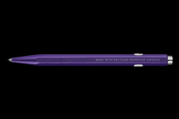 De samenwerking tussen Caran d'Ache en Nespresso is succesvol te noemen. Recentelijk onthulde Caran d'Ache alweer de derde limited edition pen, gemaakt van gerecyclede Nespresso capsules. In dit geval de paarse 'Arpeggio' capsule.