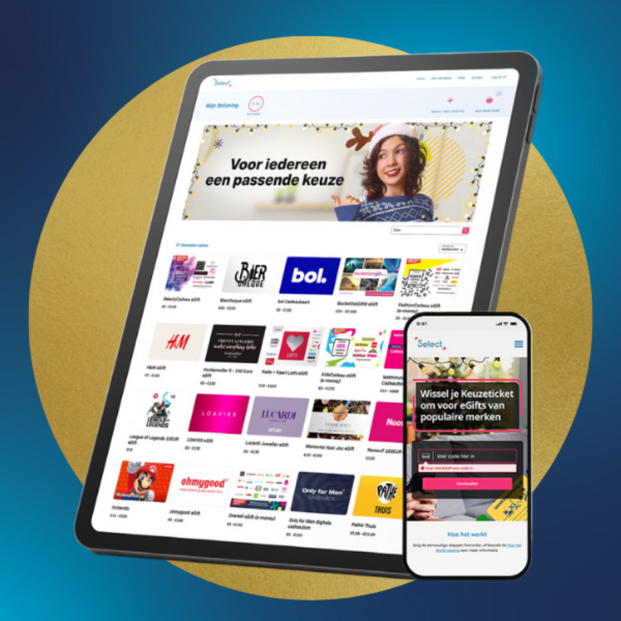 Verras deze kerst met een digitaal geschenk waarmee medewerkers/ klanten zelf hun favoriete eGift kunnen kiezen. Ontvangers kunnen kiezen uit een reeks opties waaronder populaire A-merken en onze One4all thema cadeaukaarten. Perfect voor wanneer je werknemers en/of klanten wilt verrassen met een grote keuze aan bekende digitale cadeaukaarten. Van dineren en winkelen tot reizen en vrije tijd, er is voor elk wat wils. Jij bepaalt de waarde van elke Select code, of het nu een beloning is van €5,- of een kerstgeschenk van €150,-