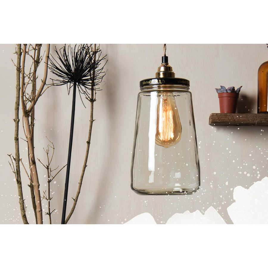 Deze Pickle Light Large met twisted snoer van RESCUED voelt zich helemaal thuis in de keuken. De lamp is gemaakt van een pot augurken die nu ruimte gemaakt hebben voor een lampje. Door een gat in de zwart met gouden deksel loopt de fitting en door de deksel er af te schroeven, kan je de lamp vervangen. Deze tafellamp is 28 cm. Ook leuk om op te hangen aan een plankdrager naast je bed.