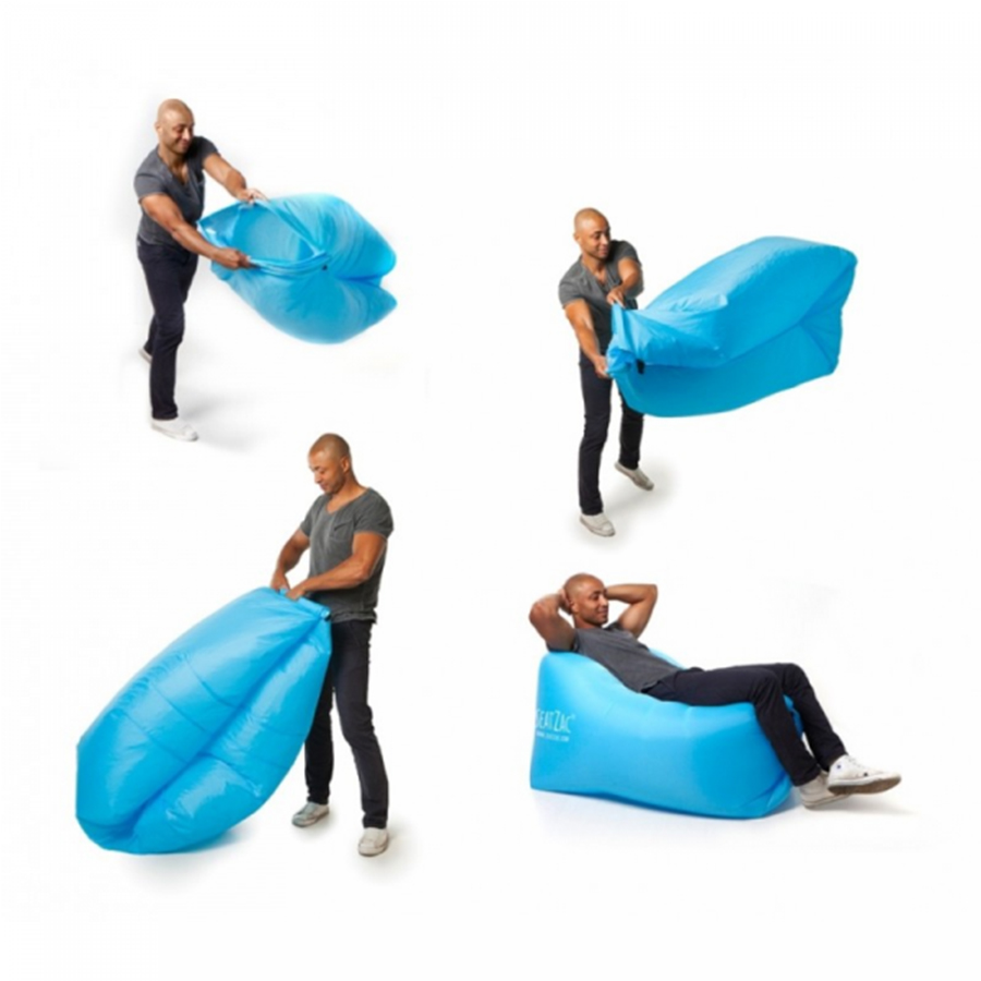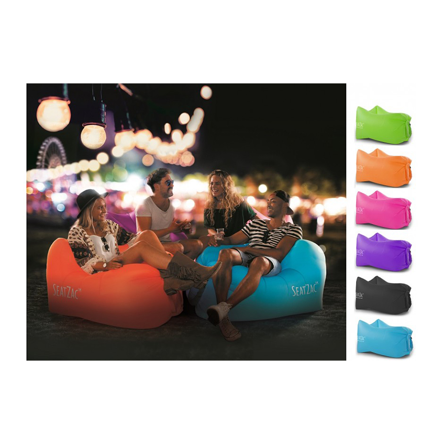 SeatZac. De compacte en super comfortabele lucht gevulde chillbag. Vanaf nu kun je dus waar je maar wilt je luie stoel neerploffen: in je woonkamer, op je balkon of in je tuin. SeatZac is gemaakt van parachutezijde, een ijzersterk en ultralicht ripstop polyester. Opgevouwen is ie niet groter dan de zaterdagkrant, en hij weegt maar 750 gram. Er zijn zes kleuren en je vouwt hem zo weer op in zijn eigen draagtas. Hij is zo gemaakt dat je hem niet hoeft op te pompen. Pompen is natuurlijk niet chill. Als je de SeatZac uitvouwt en door de lucht beweegt, vullen de luchtzakken zich met lucht. Als je ze allebei vol hebt, rol je het uitende van de Seatzac minimaal 4x op en klik de sluiting dicht om het optimale zitcomfort te beleven. Als je van chillen en shinen tegelijk houdt, kun je met de LightKit je SeatZac op laten lichten. Chill vanaf nu als een baas.