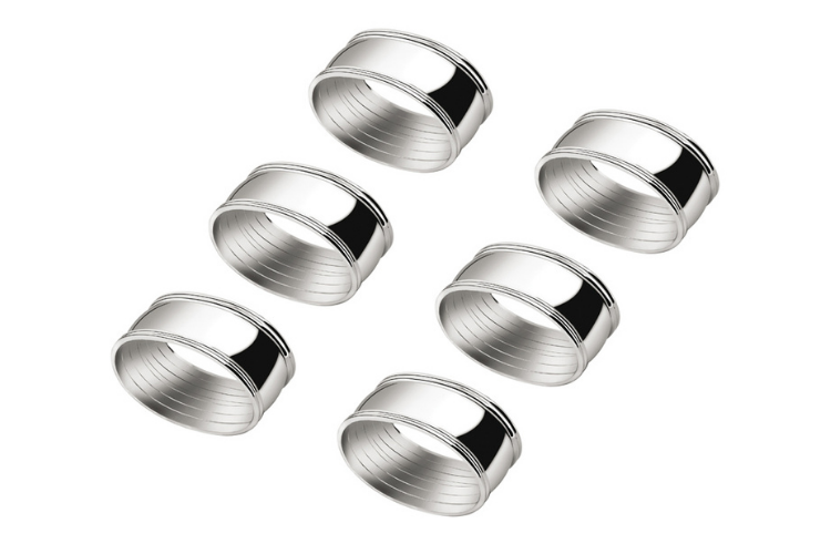 Set van 6 klassieke ovalen servetbanden. Zilver kleur.