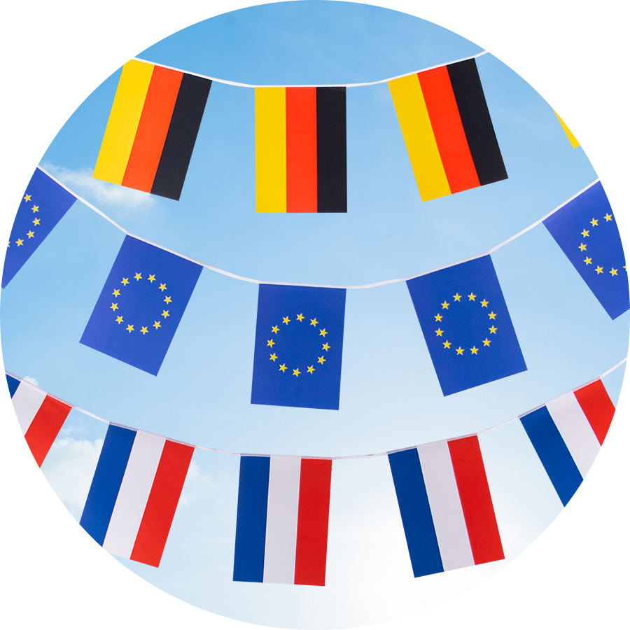 Voor een begroeting van internationale contacten zijn deze vlaggenlijnen van alle Europese- en een aantal internationale landen uitermate geschikt.